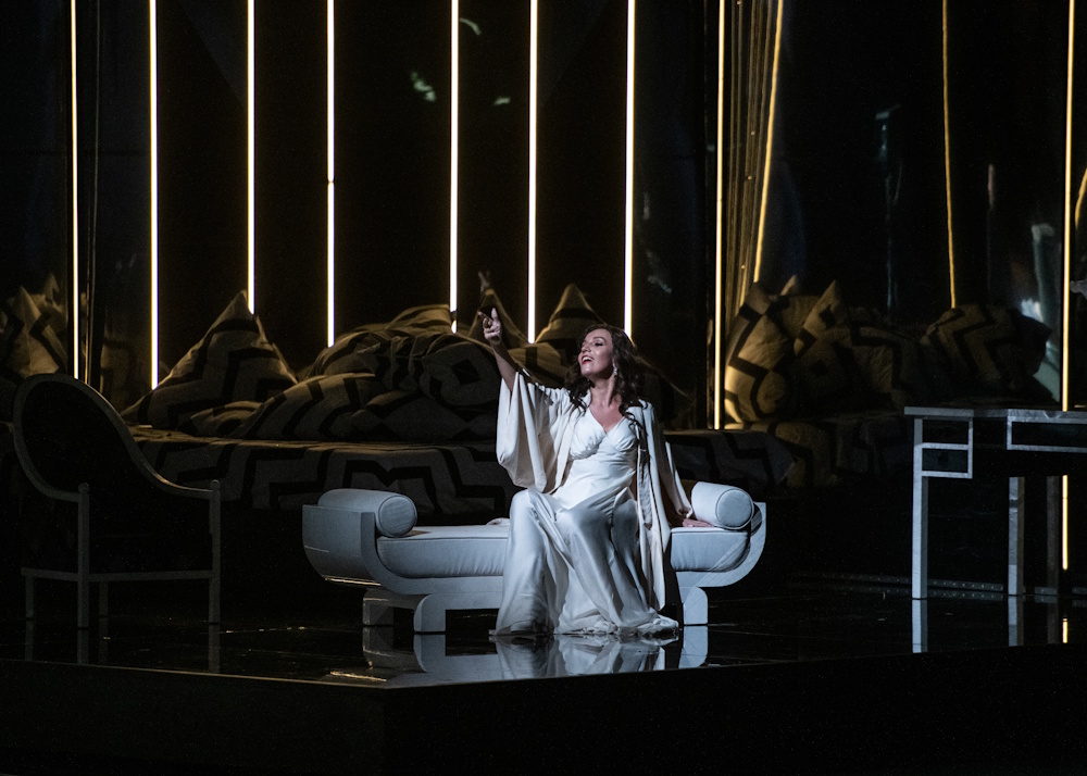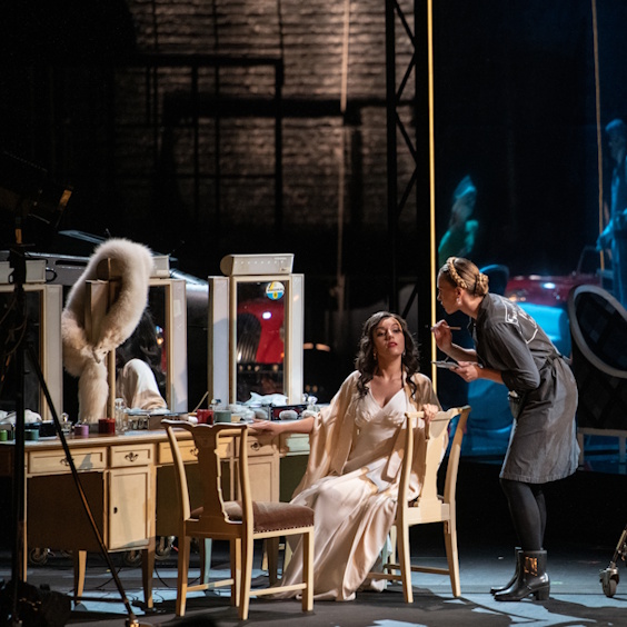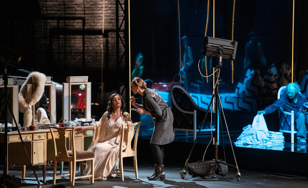 Сценография спектакля близка к стилю фильмов «нуар» с характерными световыми контрастами и драматичными тенями. Сценические костюмы напрямую отсылают к кинематографу 1930-1940-х годов. Неизменным остается эмоциональное содержание, которое постановщик определяет краткой формулой: «Женщина между двух мужчин и как следствие — катастрофа».